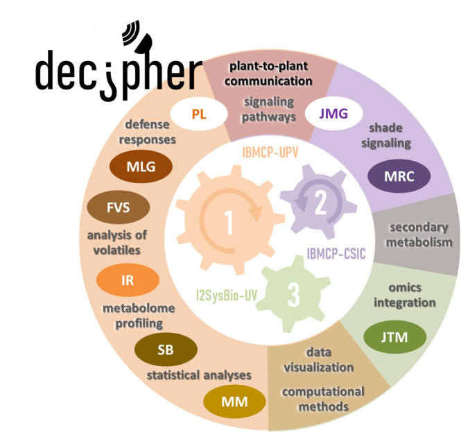 DECIPher builds upon the foundational work established by the ENIGmA project which explored plant-to-plant communication mediated by volatile organic compounds. This project aims to further investigate how plants, as receivers of specific VOCs, decode and integrate VOC-containing information to enhance their acclimation capacity.